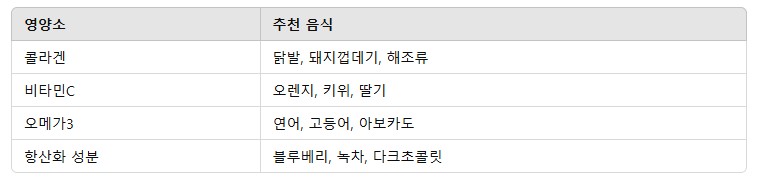 ✅ 콜라겐이 풍부한 음식 섭취 & 수분 충분히 마시기!
